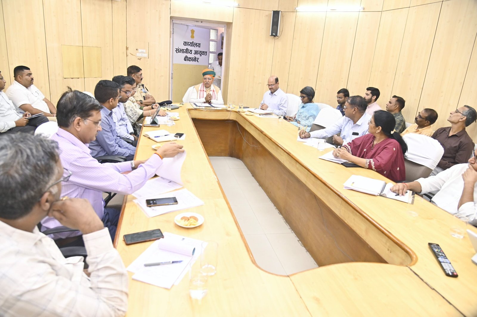 बैठक में संभागीय आयुक्त विश्राम मीणा, पुलिस महानिरीक्षक हेमंत शर्मा, जिला कलक्टर श्रीमती नम्रता वृष्णि, नगर निगम आयुक्त मयंक मनीष, बीकानेर विकास प्राधिकरण आयुक्त श्रीमती अपर्णा गुप्ता, जिला परिषद के मुख्य कार्यकारी अधिकारी सोहनलाल, अतिरिक्त कलेक्टर (प्रशासन) सुरेश यादव, अतिरिक्त कलेक्टर (नगर) रमेश देव सहित जल संसाधन एवं अन्य विभागीय अधिकारी मौजूद रहे। वहीं संभाग के अन्य जिलों के जिला कलेक्टर एवं पुलिस अधीक्षक वीडियो कांफ्रेंस के माध्यम से जुड़े।