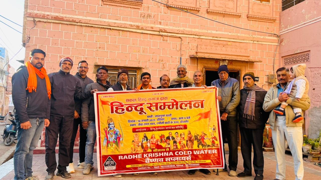 बीकानेर । लक्ष्मीनाथ नगर की लाल गुफा बस्ती में आगामी रविवार, 18 जनवरी को छबीली घाटी स्थित सेवा सदन भवन में सायं 4:00 बजे से हिंदू सम्मेलन का आयोजन किया जाएगा। सम्मेलन की तैयारियों के तहत आयोजन स्थल के ठीक सामने पोस्टर विमोचन कार्यक्रम संपन्न हुआ।