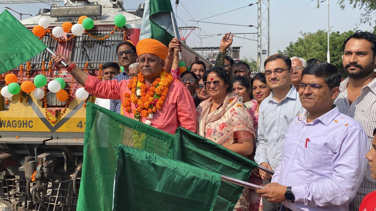 बीकानेर (पश्चिम) विधानसभा क्षेत्र विधायक जेठानंद व्यास तथा श्रीमती सुमन छाजेड़ ने हरी झंडी दिखाकर इसे रवाना किया।